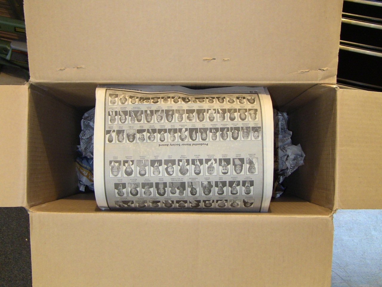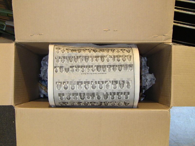 2) Packaging materials (you will have somewhat of a choice). Newspaper is as good as any, you will simply need a lot of it. Use the black & white news print, not colored ads or funny papers. If you do not get the paper, ask a neighbor or a friend. You can also use bubble wrap or styrofoam P-nuts. The "C" shaped nuts work the best. It is not necessary to go to this expense if you can find newspaper.